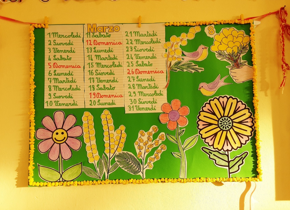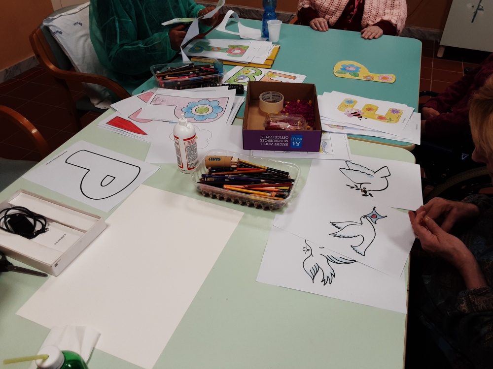 Facilitiamo i processi attraverso i quali gli Ospiti riscoprono le capacità di abitare il tempo che vivono. Fra le attività di animazione, la stimolazione sensoriale comprende l'ampio campo dei laboratori manuali e creativi, con uso di tecniche e materiali diversi. Tramite i laboratori si favoriscono gli atteggiamenti socializzanti e cooperativi nel gruppo e la valorizzazione delle abilità e dell'autostima. Lo scopo è arrivare a creare degli elaborati e manufatti comuni, nel rispetto del contributo di ognuno. Senza alcun condizionamento preordinato, la creatività del singolo e del gruppo si attivano con l'utilizzo di tecniche e materiali differenti dando spazio alla massima libertà comunicativa ed espressiva di tutti i partecipanti. La realizzazione dei calendari del mese di marzo, i cartelloni ed i nuovi addobbi per i saloni, offrono agli Ospiti l'opportunità di rappresentare l'arrivo della primavera. In una cornice di gruppo, l'arrivo della nuova stagione infonde negli animi dei partecipanti, ottimismo e felicità: ognuno con la propria particolarità e capacità, con i mezzi ritenuti più idonei e molto impegno, rappresenta così lo splendore della primavera.