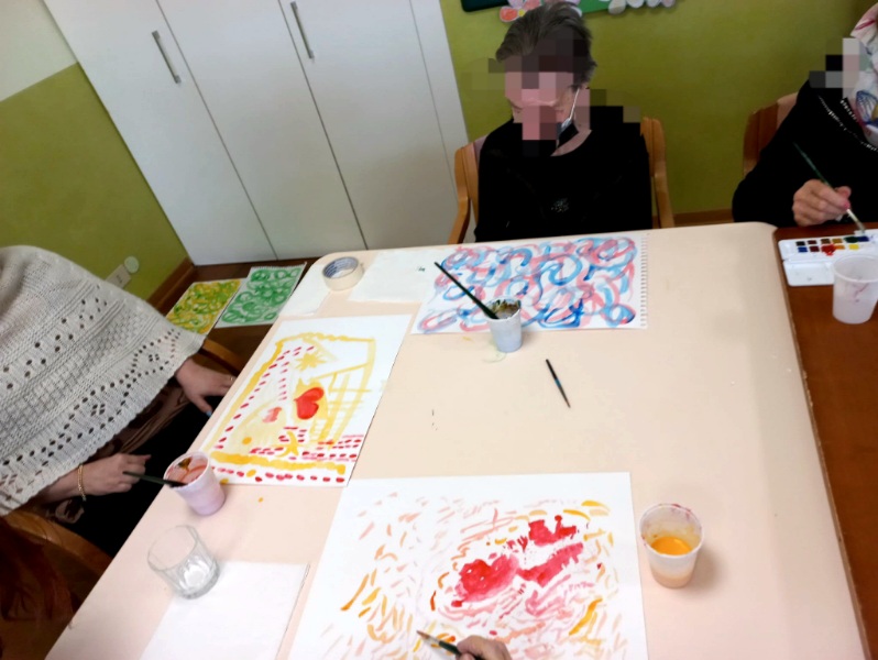 Ana Maria e Luca, in questi mesi, hanno instaurato una relazione di fiducia con gli ospiti e li hanno accompagnati in uno straordinario viaggio. I partecipanti hanno potuto condividerne le tappe nel rispetto reciproco e praticando la sospensione del giudizio sul lavoro proprio e altrui. La meta non è stata il raggiungimento di canoni estetici, ma la bellezza dell'espressione di emozioni e sentimenti. I lavori realizzati, facendo uso delle arti pittoriche o plastiche, scegliendo liberamente quali materiali e strumenti utilizzare, sono la traduzione delle singole interiorità, una sorta di oggetto transizionale, nel quale riconoscersi e dal quale trarre cura, accettazione e sollievo.
