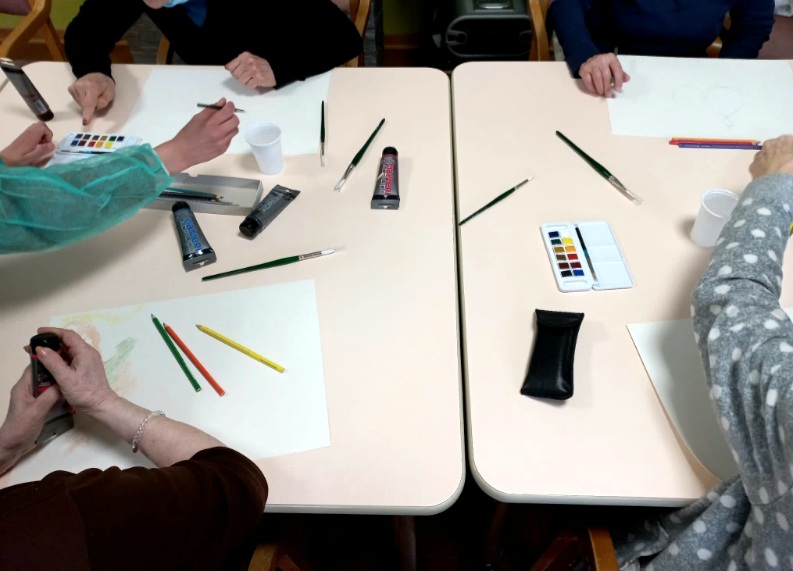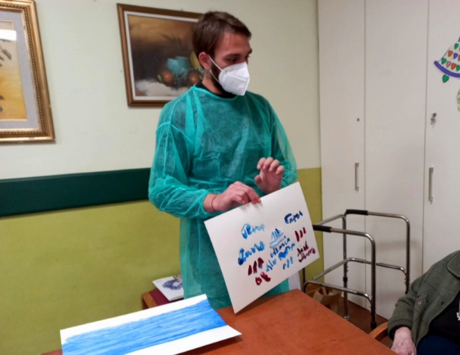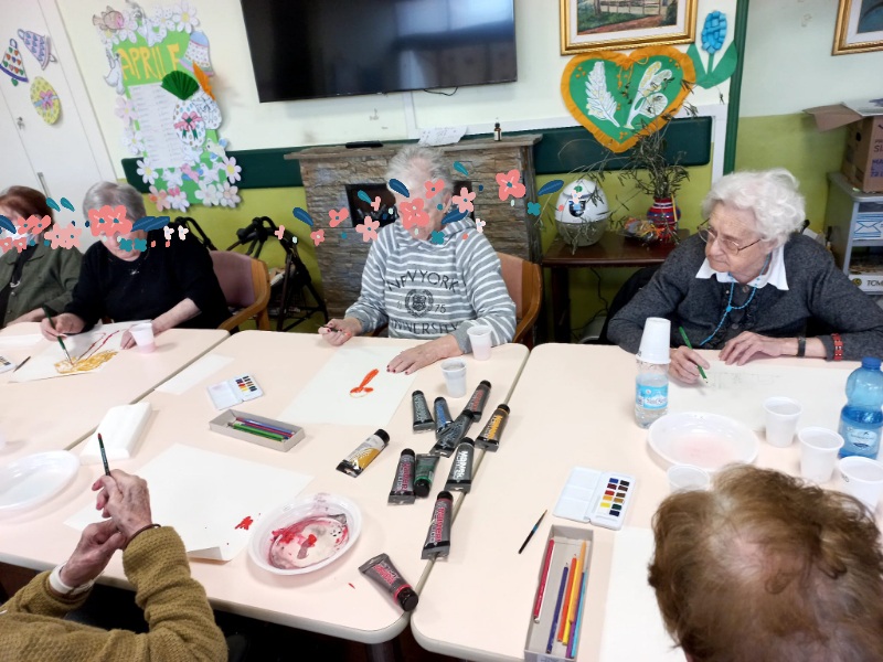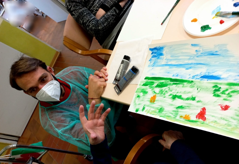Proseguono nella nostra struttura gli incontri di arteterapia, rivolti a un secondo gruppo di dieci ospiti, provenienti della Rsa e dal Centro diurno Alzheimer. Il laboratorio, condotto da Ana Maria Nistor, tirocinante dell’associazione C.R.E.T.E e coadiuvata da Luca Graziano, fa parte del progetto “Riconciliarsi: artisti, comunità, istituzioni”, progetto partecipativo con la comunità di Carrara, a cura di Maria Rosa Sossai, promosso dal Comune di Carrara, in collaborazione con l’Accademia di Belle Arti e con A.P.S. Oltre/Carrara studi aperti.