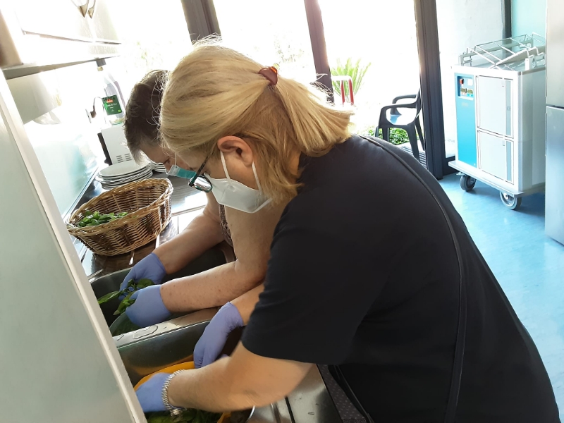 I laboratori di cucina si tingono dei colori dell'Estate e declinano i sapori degli ortaggi di stagione, raccolti nell'orto nei vasi della Casa di riposo; sono strutturati per il mantenimento e la stimolazione delle autonomie psico-motorie, delle capacità cognitive e sensoriali e per alimentare autostima e buon umore.