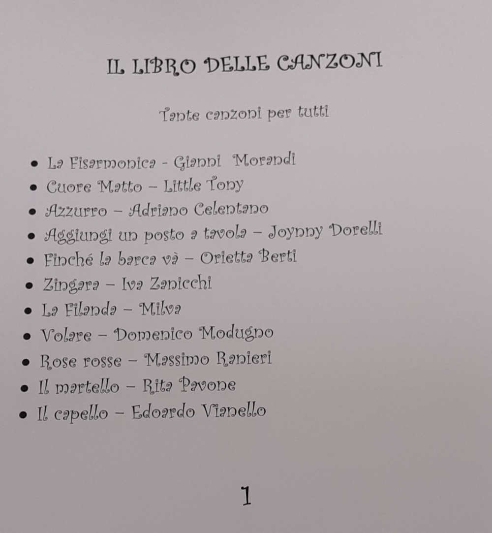 Il canto, spontaneo per gli ospiti “canterini”, è molto amato da tutti e periodicamente viene così organizzato il momento karaoke dove con microfono alla mano, aiutati dalle basi musicali e dai testi che scorrono sui monitor delle Smart TV, un po' tutti vincono la timidezza interpretando la loro canzone preferita, accompagnati nel ritornello dai compagni solidali.