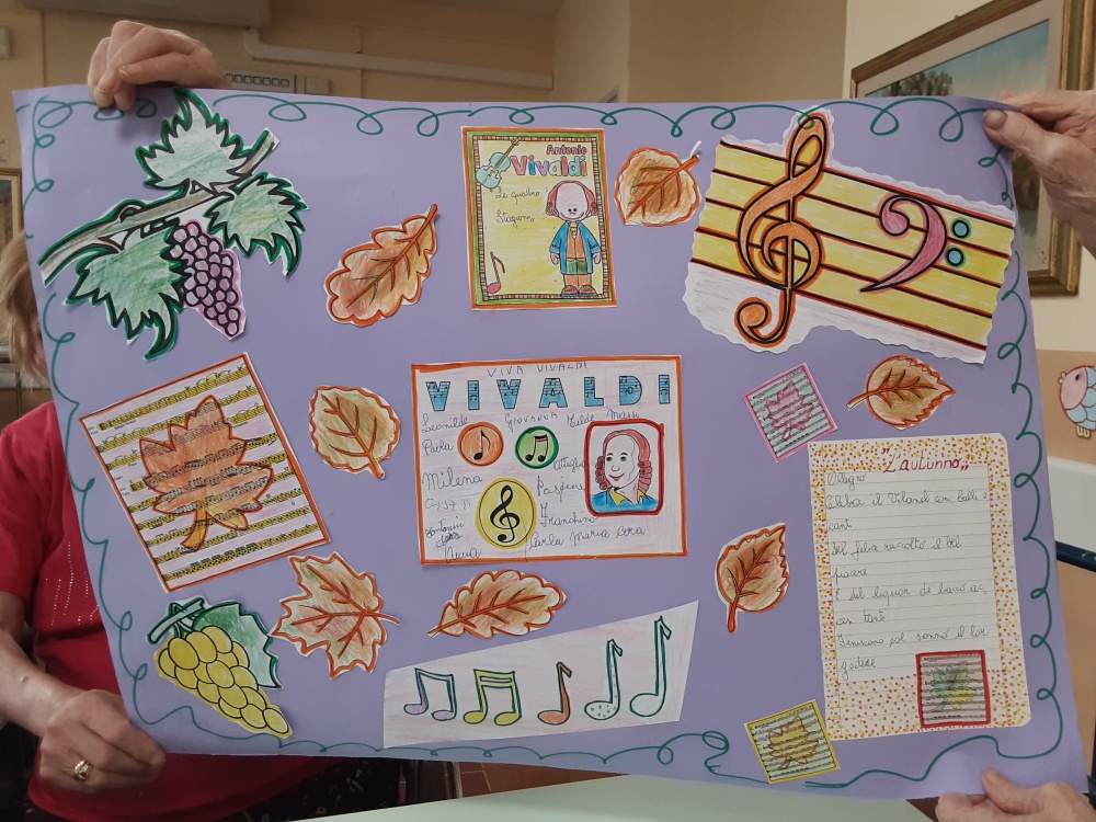 Nell’ambito delle attività musicali dedicate all’ascolto, sulla scia dei ricordi è stato scelto il concerto per violino, archi e clavicembalo “L’Autunno” di A. Vivaldi tratto da “Le quattro stagioni” che descrive alcuni aspetti caratteristici di questi mesi dell’anno.