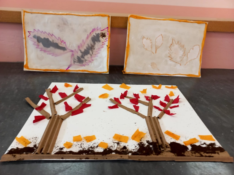 Coffee painting per illustrare l’autunnoCadono le foglie nei laboratori creativi