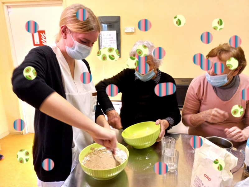 In occasione di giovedì grasso gli ospiti del Centro diurno Alzheimer hanno confezionato un dolce guarnito con codette colorate, che è stato il pezzo forte della merenda e in occasione di martedì grasso è stata organizzata una ricca pentolaccia che, con un allegro sottofondo musicale, è stata rotta dai colpi degli ospiti più dinamici, riversando nel salone una cascata di caramelle, dolcetti e cioccolatini.