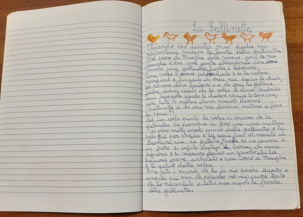 Nell'ambito dell'attività di stimolazione cognitiva, apprendimento, condivisione di memorie autobiografiche condotta con un gruppo di Ospiti, la compartecipazione ai ricordi è quella che lascia ampio spazio alla narrazione di esperienze di vita vissuta ed aiuta i partecipanti ad orientarsi, a mantenere il contatto con il mondo, a facilitare lo scambio di opinioni. Gli strumenti per l'esercizio del laboratorio sono individuati in base agli interessi degli Ospiti, ritenuti adatti e piacevoli per il loro contenuto. Attraverso la reminescenza, interveniamo sulle memorie positive degli Ospiti presenti e, grazie ai processi di narrazione, stimoliamo la memoria autobiografica ed il senso del sé, stimoliamo la creatività e l'attenzione, attiviamo emozioni e risorse, condivisione e socializzazione, favoriamo l'autostima. Oggetto dell'attività, di questo periodo, sono le fiabe, favole e leggende della tradizione popolare carrarese, parte del ricco patrimonio di cultura, tradizioni e credenze. Queste, tramandate oralmente di generazione in generazione, originali e spontanee nei contenuti, sono narrate dai singoli con una freschezza nuova che, le rende piacevoli e divertenti. “…io abitavo in un paese di cavatori…mio padre, in inverno, quando era a casa dal lavoro, raccontava a noi fratelli, riuniti attorno alla calda stufa a carbone, la favola della gallinella furba …”E questo è soltanto l'inizio perché di fiabe e leggende, i nostri Ospiti ne hanno numerose altre da raccontare:‘L Napon', La Z'ndrona”, l “Bobolo”, Il “Bafarded”, La leggenda del Monte d'ArmeLa leggenda delle ossa …