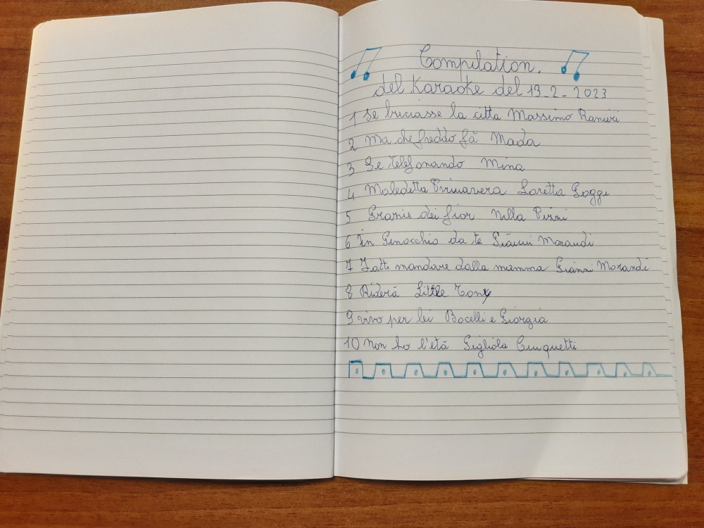 Nell'ambito delle attività musicali, si è svolto ieri pomeriggio il momento Karaoke, con interpreti e pubblico tutti al femminile. Sull'onda dell'entusiasmo generato dai ricordi, le ospiti hanno scelto alcuni tra i più famosi brani della canzone melodica italiana, in concomitanza con la festa di San Valentino, che avevano partecipato alle prime edizioni del Festival di S. Remo, fino agli anni 60/70. Le singole interpretazioni dei brani preferiti, aiutate dalle basi musicali e dai testi che scorrevano sui monitor dei devices a disposizione, sono diventate inevitabilmente corali.