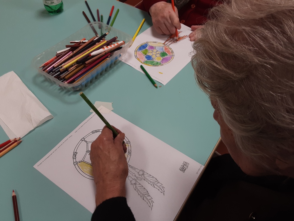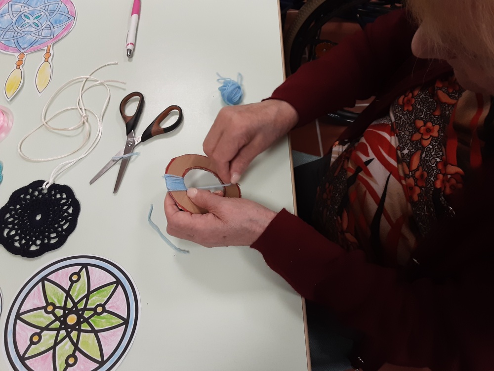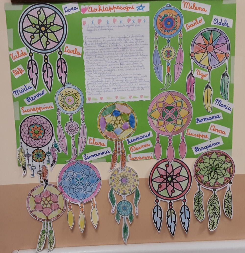 Sulla scia del ricordo legato ai colori, alla struttura, alle decorazioni ed ai suoni degli acchiappasogni ammirati, che rimandano ad una dimensione magica, con un gruppo di ospiti, è stato condotto il laboratorio per la realizzazione dell'acchiappasogni.