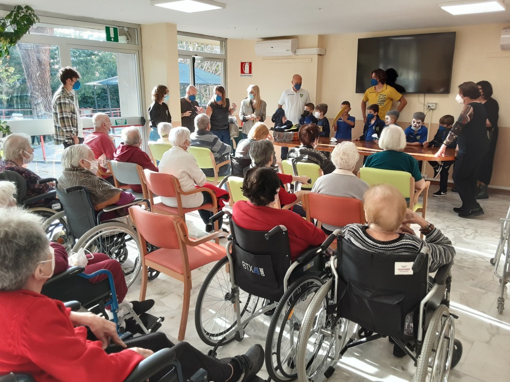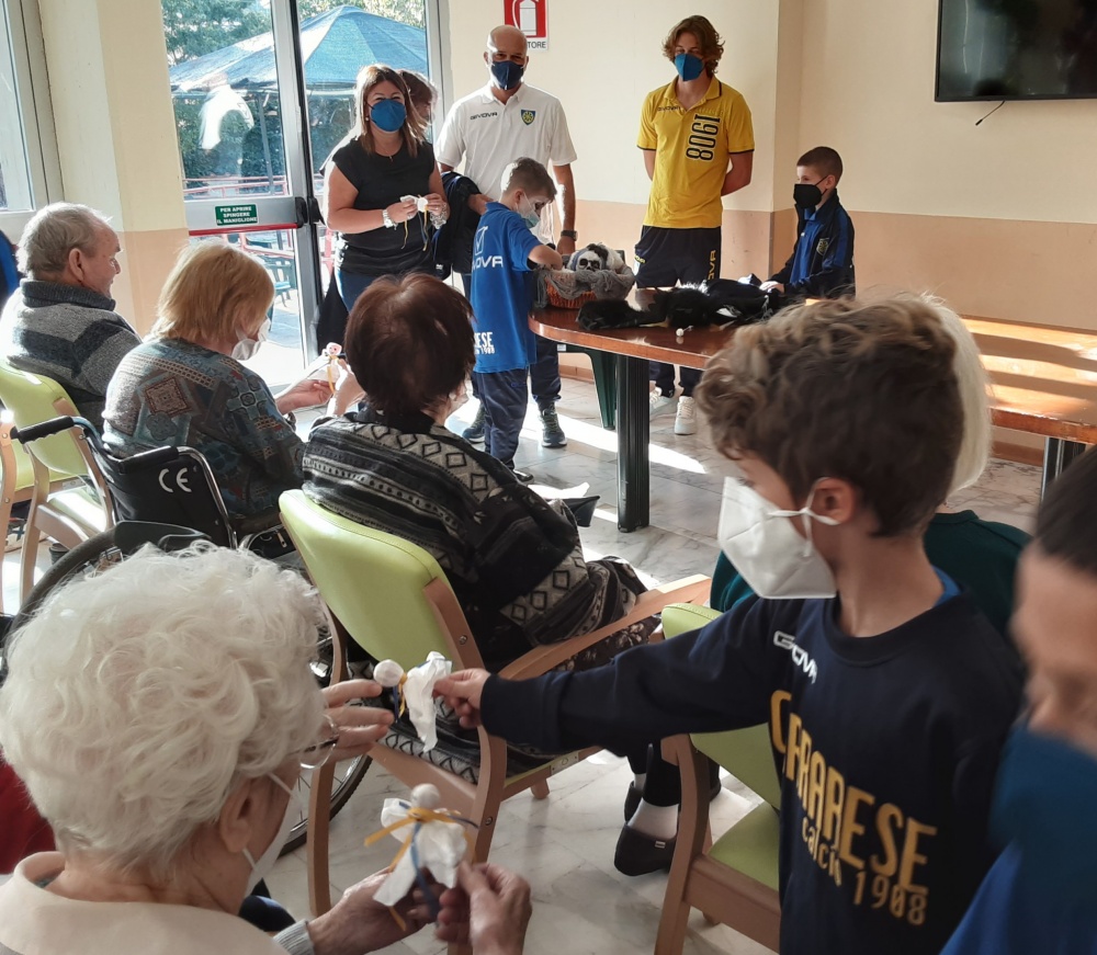 I bambini, truccati e mascherati per l'occasione, accompagnati dalla presidente dell'Associazione Diritti Anziani di Carrara Sig.ra Laura Menconi promotrice dell'iniziativa, dall'allenatore della squadra Sig. Gozzani Fabio, da Daniel Frey terzino destro - classe 2002 - della prima squadra e dalla poetessa Sig.ra Tonina Tessa, accolti dalla nostra direttrice, dott.ssa Cordiviola Antonella, hanno distribuito agli Ospiti presenti i loro “dolcetti-scherzetti” e, soprattutto, tantissima allegria.