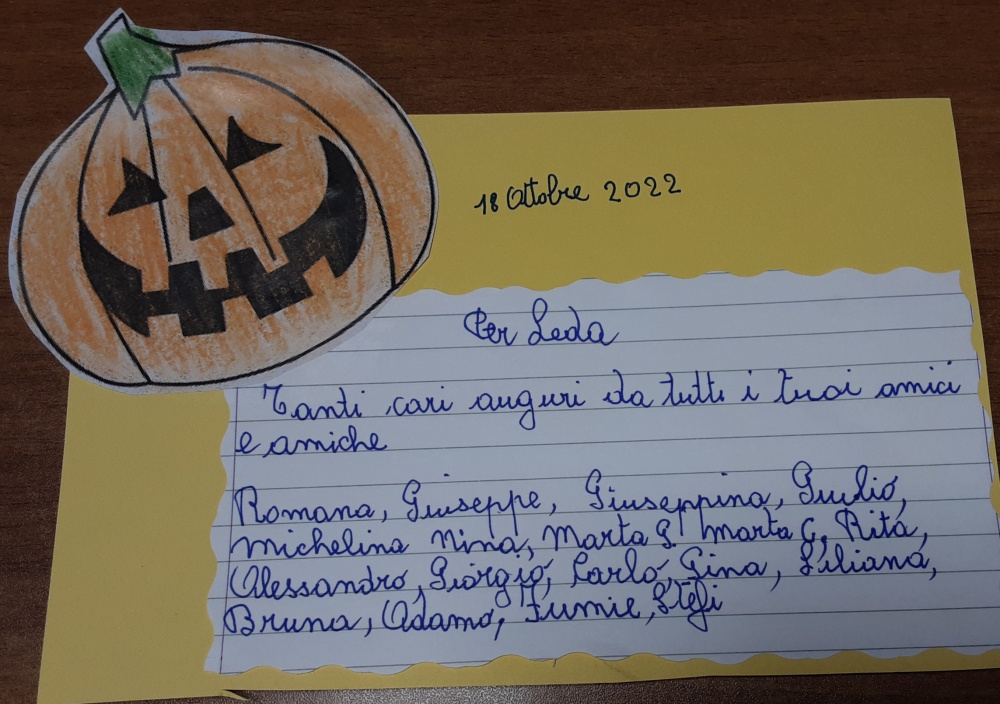 Rinnoviamo, in questo clima di festa, gli auguri di buon compleanno ai nostri Ospiti nati ad ottobre: Alberto-Piero-Rita-Giovanna-Leda-Angela Maria, festeggiati nel corso del mese, come consuetudine con i compagni: la merenda speciale, i regali ed i biglietti preparati in segreto, la musica ...e la dedica corale degli amici: "Tanti auguri a te..." per questo loro momento speciale ed unico.