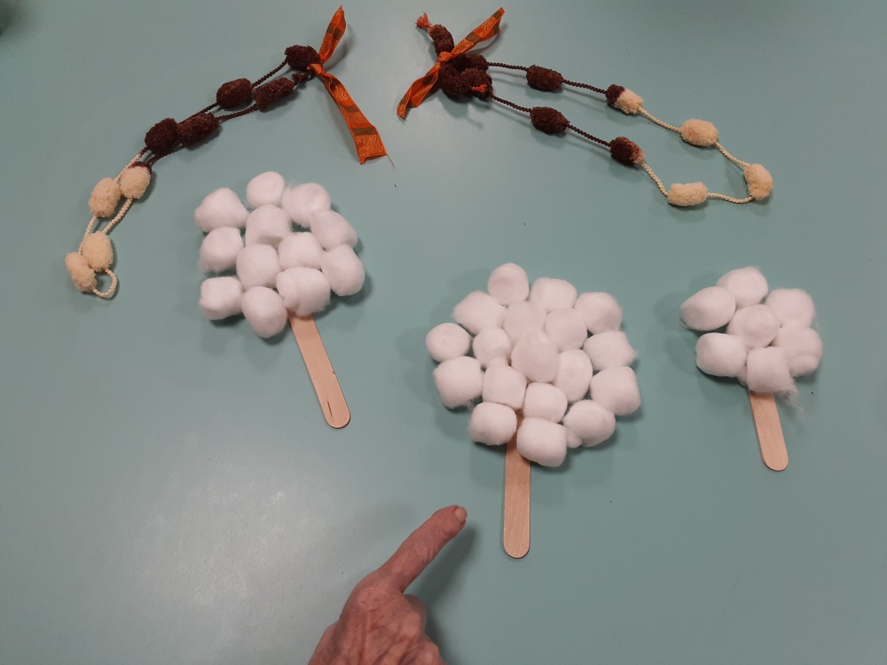 Sulla scia di questa reminiscenza condivisa, è stato realizzato un laboratorio creativo volto alla realizzazione di alcune “collane di nocciole” subito indossate dalle signore, e “nuvole di zucchero filato”.