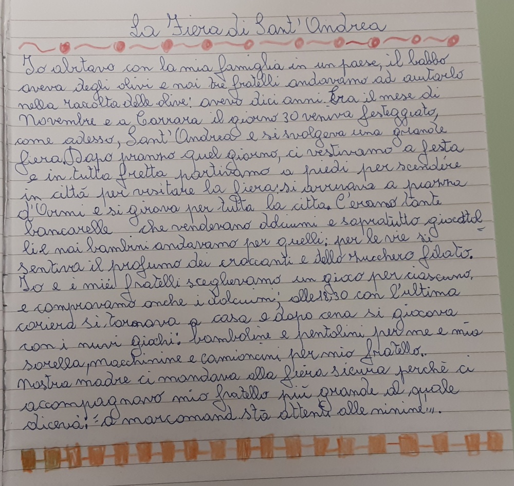 Il laboratorio del colloquio biografico tematico di questo periodo, è dedicato alla raccolta di ricordi della tradizionale Fiera di S. Andrea, che si svolge ogni anno a Carrara il 30 Novembre.