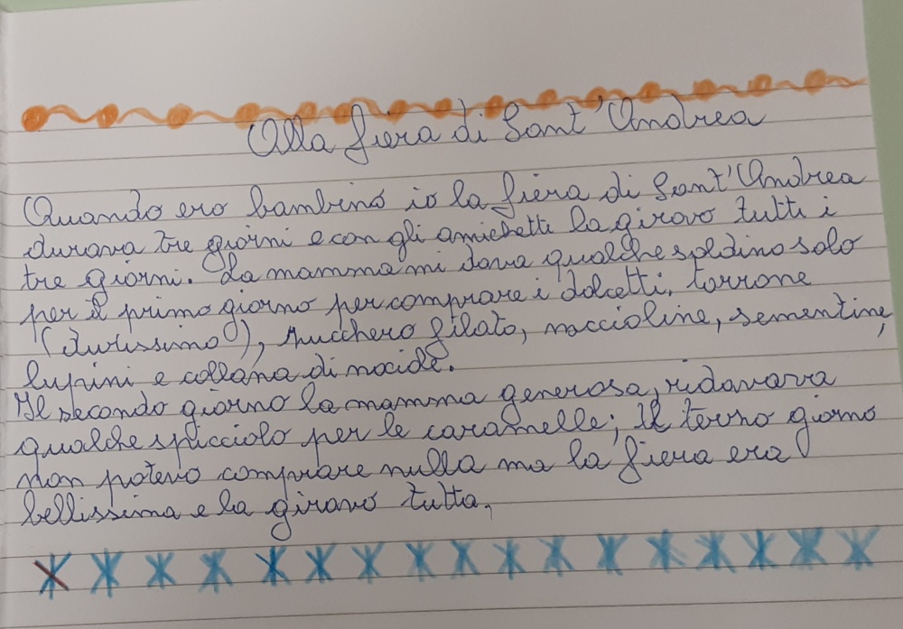 I ricordi colorati e vivaci, profumano di zucchero filato, di croccantino, di torrone, di lecca lecca, di bastoncini di zucchero.Durante la stesura delle memorie, gli Ospiti coinvolti, hanno raccontato che la Fiera di S. Andrea ha origini molto antiche, istituita per celebrare l'apostolo a cui è dedicato il duomo, anche se, hanno sottolineato, il patrono della città è San Ceccardo.