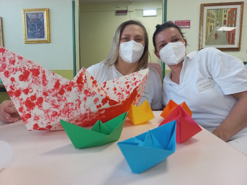 Le barchette sono state realizzate, durante le ore di laboratorio creativo-manuale, utilizzando le tecniche dell'origami e della pittura a dita, unendo al piacere di produrre oggetti con le proprie mani la libera espressione della creatività. Grandi fogli di carta bianca sono stati dipinti dagli ospiti, della Rsa e del Centro diurno Alzheimer, intingendo le dita nelle tempere e lavorando le superfici con tratti spontanei e sperimentazioni cromatiche.