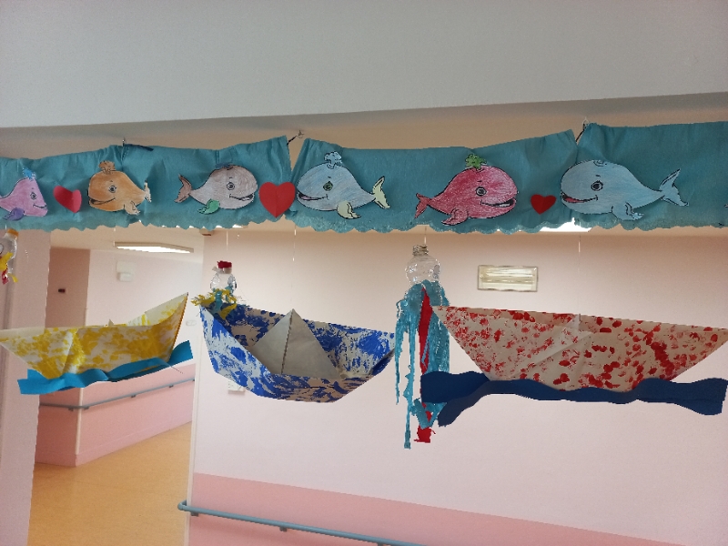 Si chiama Aurora, per ogni nuovo giorno che si affaccia sul mondo, ed è l'ammiraglia di una flotta di barchette di carta in un mare di polpi, di pesci, di meduse, di conchiglie, di cavallucci marini, che hanno preso vita da materiale di riciclo e colorano l'Estate della Casa di riposo.