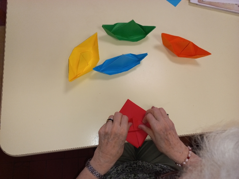 L'attività di finger painting si svolge in gruppo, è un'occasione di socializzazione ed è una gradita e divertente pratica di stimolazione sensoriale e di coordinazione oculo-manuale, particolarmente utile nei casi in cui la motricità fine della mano è compromessa. L'arte giapponese di piegare la carta, l'origami, ci viene in aiuto, allenando concentrazione e memoria, in un gioco di ripetuta, armoniosa e lenta esecuzione, nel quale si rinnovano autostima e autoefficacia e la carta si trasforma in una nuova creazione.