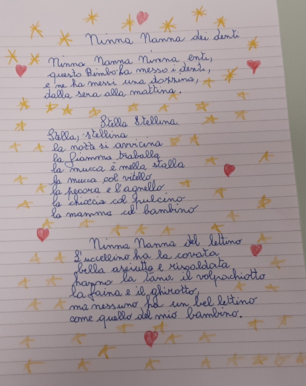 E’ stata inoltre effettuata una ricerca sulle ninne nanne scritte dai famosi compositori di musica classica Mozart, Brahms e Chopin seguita dall’ascolto.