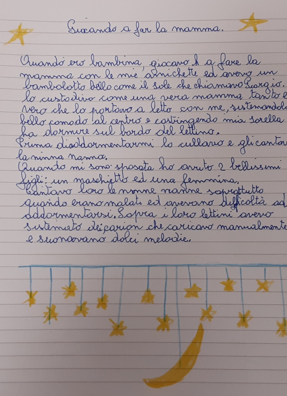 Queste melodie popolari molto antiche cantate per fare addormentare i bambini, caratterizzate da un ritmo lento e ripetitivo e che accompagnavano i piccoli al sonno, sono state ricordate dalle signore nei vissuti riferiti all’età del gioco o all’età adulta.