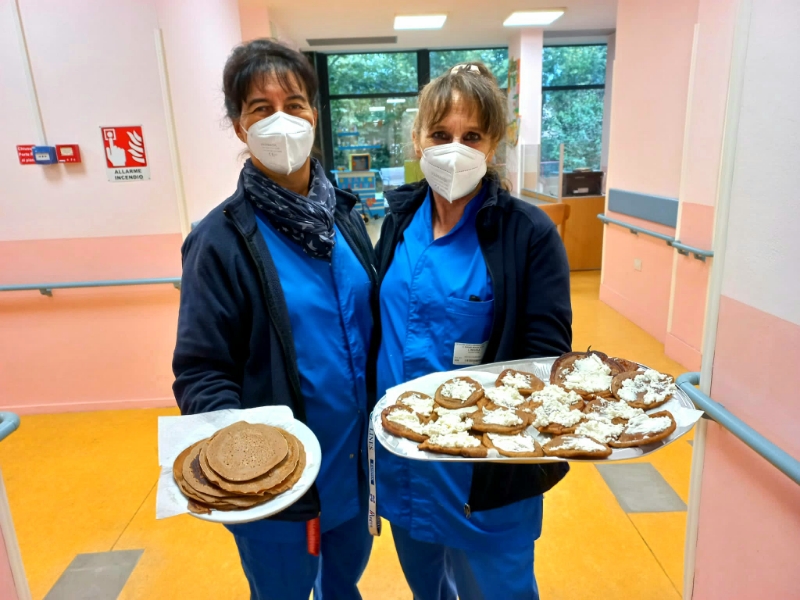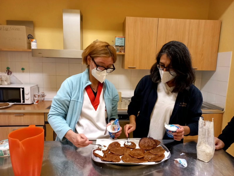 “Agli ospiti piace cucinare- specificano Marisa e Antonella, la coordinatrice del Centro- prepariamo con loro torte, macedonie, crostini, merende di vario genere. E’ un modo piacevole per occuparli e attivare le abilità che ancora possiedono”.