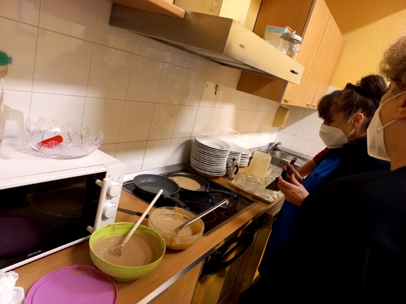 L’attività di cucina, inserita nel programma di animazione e di socializzazione del Centro, è molto gradita agli ospiti. Crea occasioni di aggregazione e di convivialità, stimola le capacità cognitive e oculo-manuali e accresce autostima, autoefficacia e soddisfazione nella degustazione del cibo confezionato.