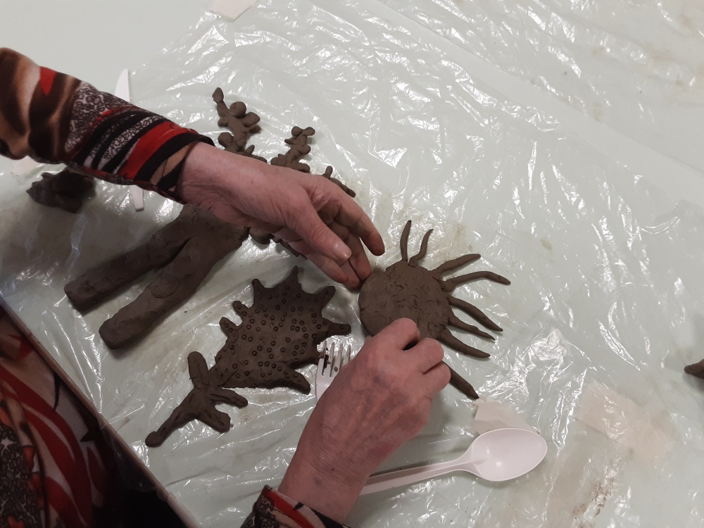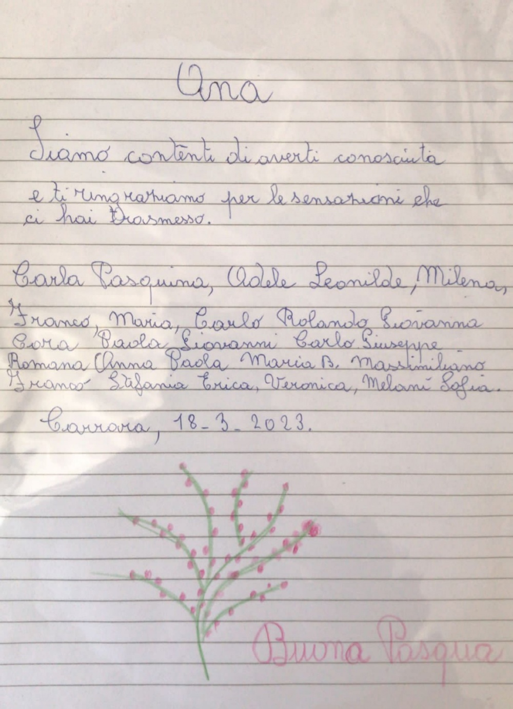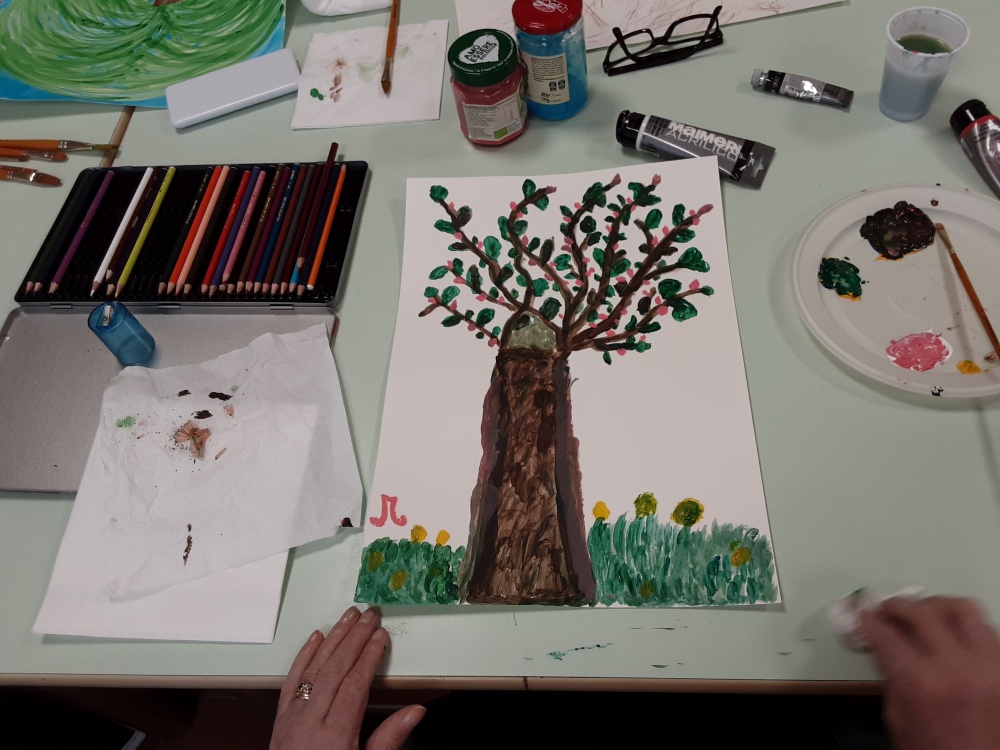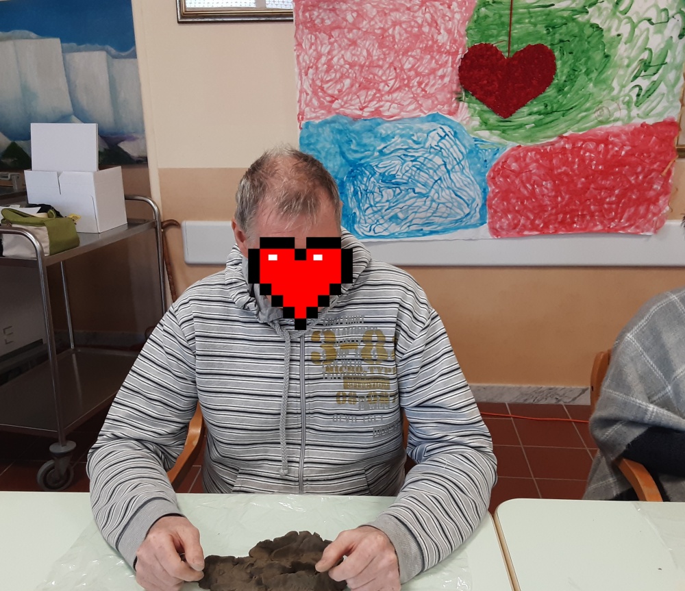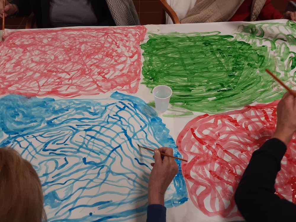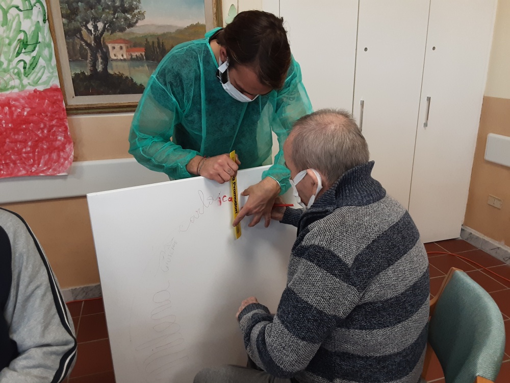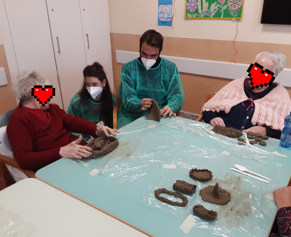 Il percorso artistico espressivo, in collaborazione con il Museo “ Mudac” ed il Progetto “Riconciliarsi” in corso nella nostra struttura, il 18 marzo ha concluso il ciclo di incontri per il primo gruppo di Ospiti. Negli appuntamenti del mese di questo mese Luca ed Ana, i giovani conduttori dell'atelier terapeutico, hanno accompagnato gli Ospiti con pazienza, nella pratica terapeutica artistica proposta: dalla fase di rilassamento iniziale alla presentazione ed esposizione ai compagni di quanto realizzato. Importanti novità hanno caratterizzato gli incontri di questo periodo: dalla colorazione con pennelli ed acrilici su un unico grande foglio per tutti gli ospiti, passo dopo passo, al fine di fare esprimere pienamente ai partecipanti la loro autentica interiorità, negli incontri del 4 e 8 marzo, è stato introdotto il laboratorio di modellazione dell'argilla a mano libera. Come esposto dai conduttori, la manipolazione della creta consente un contatto prolungato ed affettivo con la materia, molto importante per la psicomotricità dell'individuo. Così, ad occhi chiusi come richiesto, gli Ospiti attimo dopo attimo, prendendo confidenza con l'argilla, hanno realizzato molteplici creazioni descrittive ed astratte. L'esperienza tattile vissuta è risultata molto appagante per gli Ospiti: “…il contatto con l'argilla è distensivo, mi rasserena…” /“…mi piace usare le mani e sentire questa pasta, che è fredda all'inizio ma poi si scalda …” Infine, le creazioni sono state illustrate da ciascuno con grande soddisfazione. La tematica oggetto dell'incontro del 15 marzo è stata la rappresentazione di un albero che, ciascun Ospite ha scelto di eseguire liberamente, con i mezzi artistici disponibili ritenuti più idonei. La presentazione finale al gruppo su quanto realizzato, ha permesso ai partecipanti di esprimere l'esperienza vissuta e trasmettere ai compagni le sensazioni ed emozioni vissute. Nell'ultimo incontro i partecipanti, uno dopo l'altro, hanno scritto il loro nome, seguendo una linea circolare tracciata da Ana, all'interno di una grande tela quadrata: è questa la fase conclusiva del percorso artistico del progetto “Riconciliarsi” per questo primo gruppo di Ospiti della nostra struttura che, ha vissuto pienamente, in un ampio spazio dedicato al dialogo, con curiosità e fiducia, lasciandosi guidare nello scoprire sé stessi e gli altri, in ogni momento del processo creativo. Milena, Giovanna, Leonilde, Anna, Pasquina, Adele, Romana, Carlo, Giovanni, Giuseppe, ringraziano tutti coloro che hanno reso possibile questo importante progetto per la collettività, nel quale è inserita la nostra struttura, per la creazione di una rete basata sul principio di solidarietà e condivisione, in grado di attivare le energie più creative del territorio e della comunità, convinti che l'arte migliora la qualità della vita degli individui. Un ringraziamento particolare da parte degli Ospiti ad Ana e Luca, progettisti e conduttori dei laboratori: con il loro ascolto, la pazienza, l'accompagnamento ed il sostegno, hanno reso possibile questa ricca esperienza sensoriale, vissuta nella quotidianità.