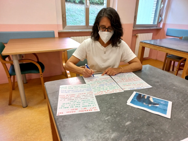 "C’era una volta un’orsa con il suo piccolo…" E’ tempo di Time slips al Centro diurno Alzheimer e Immacolata, Diva, Maria Grazia, Giovanna, Fiorella, Cristina, Anna, Marco inventano una storia.